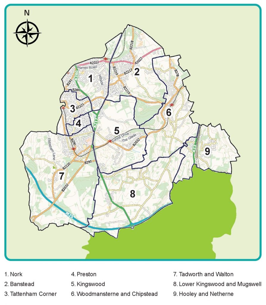 Local representation will shrink from seven councillors to two. The wards for the new council will be based on the current electoral boundaries for county council elections. There will be two councillors elected for the Nork and Tattenhams area, but the Preston part of our area (south of Chetwode Road) will be aligned with Tadworth, Walton & Kingswood, where there will also be two councillors.