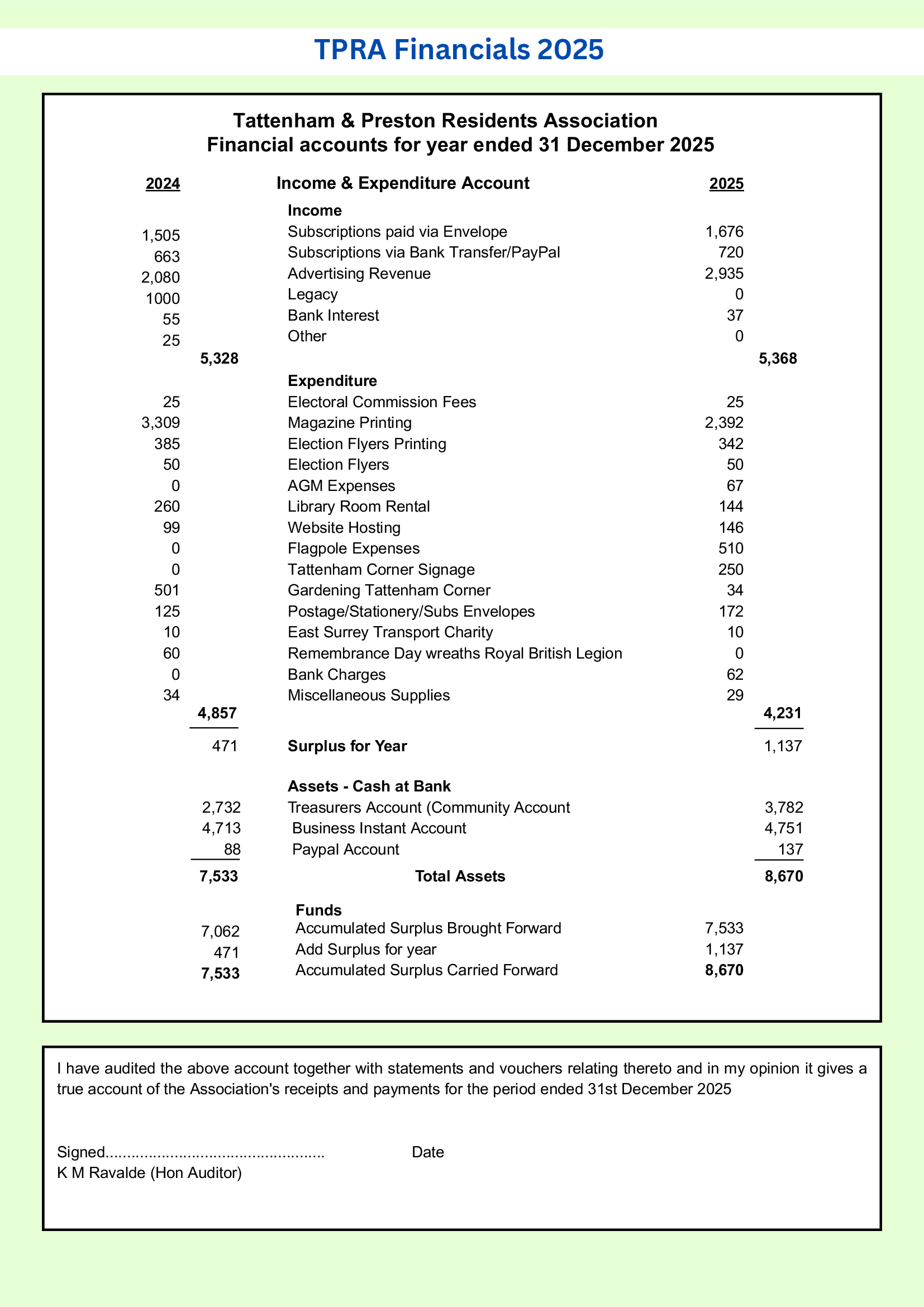 Residents Association Accounts 2025
